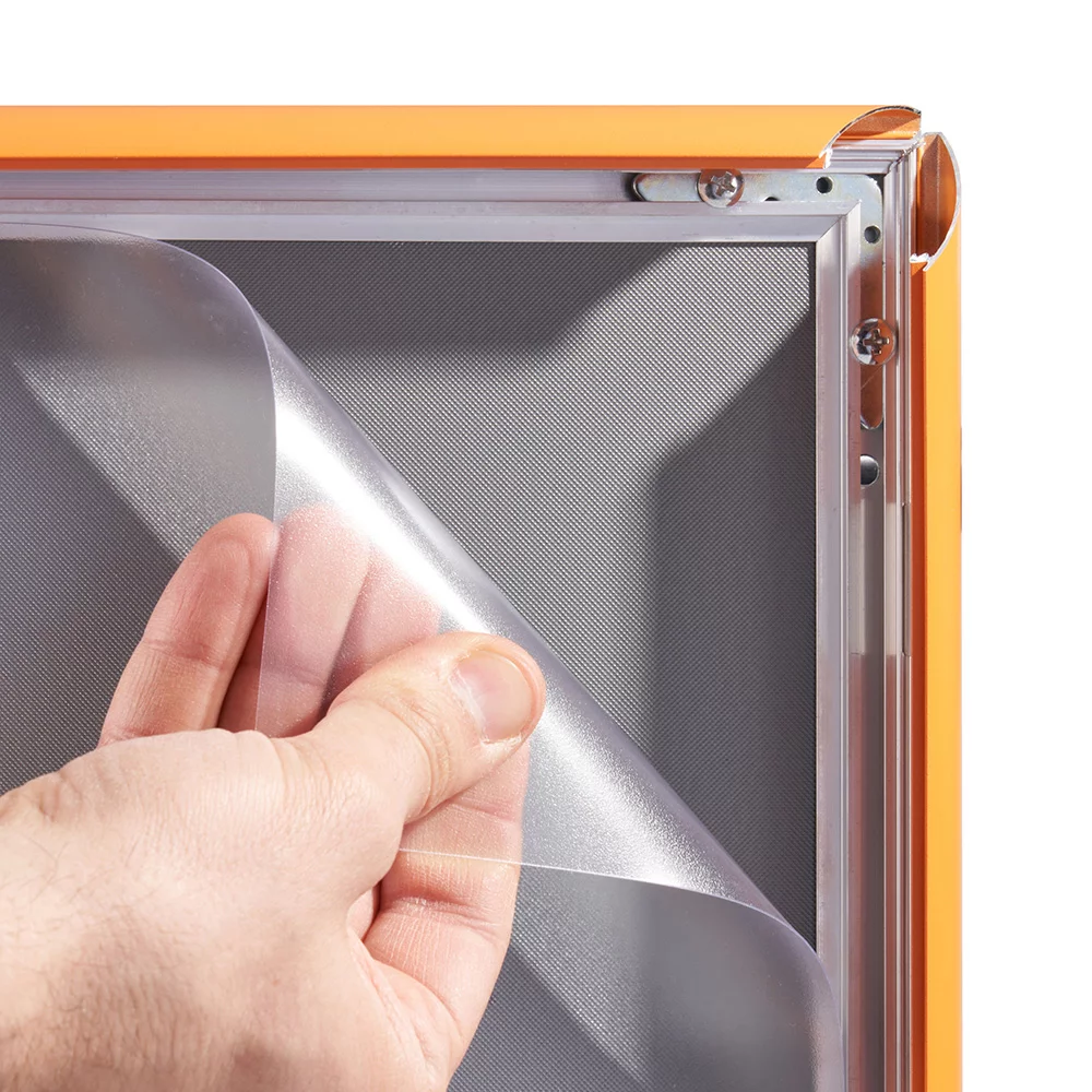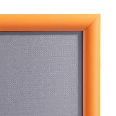 Der farbige Klapprahmen Color hebt sich von den gewöhnlichen Klapprahmen in matt-eloxiertem Alu angenehm ab und zieht die Blicke garantiert auf Ihr Plakat. Die angebotenen Farben sind mit vielen Unternehmensfarben kompatibel und fügen sich somit in Ihr Corporate Design ein.
