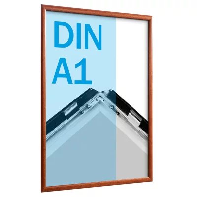 Hochwertiger Klapprahmen aus Aluminium für Poster und Plakate mit dem 25 mm breiten Standard-Profil in authentischer Holzoptik. Dieser Klapprahmen verfügt über sauber gefertigte 45° Gehrungsecken und einen langlebigen Klappmechanismus. Die Lieferung erfolgt inklusive Befestigungsmaterial bestehend aus Schrauben und Dübeln.