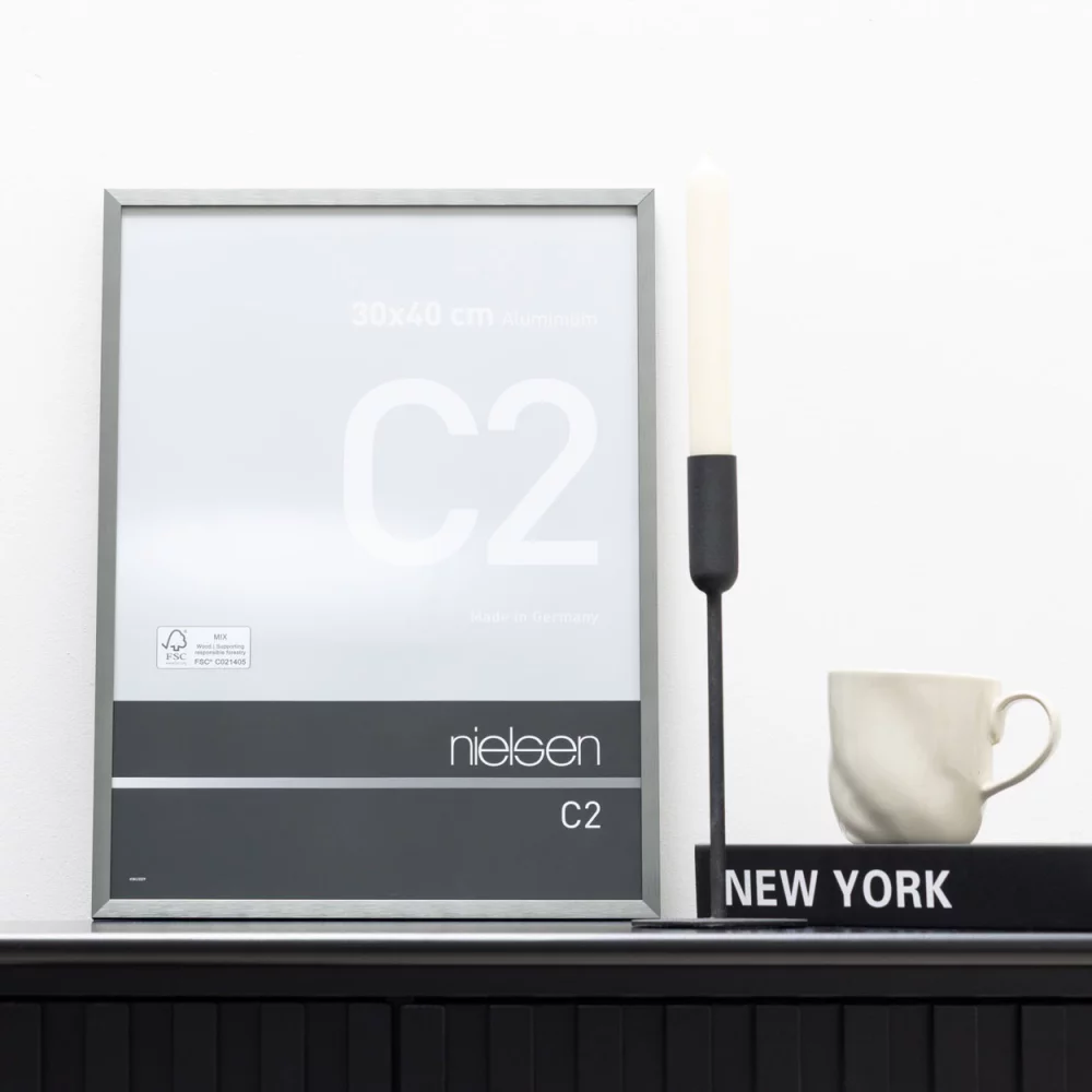 Der Aluminium-Bilderrahmen C2 konzentriert sich mit seinem klaren und kantigen Profil auf das Wesentliche. Die schlichte Formgebung liegt voll im Trend und passt zu Räumen mit moderner Einrichtung und vielen verschiedenen Bildern. Das ist Qualität und Schönheit von nielsen zu einem günstigen Preis.