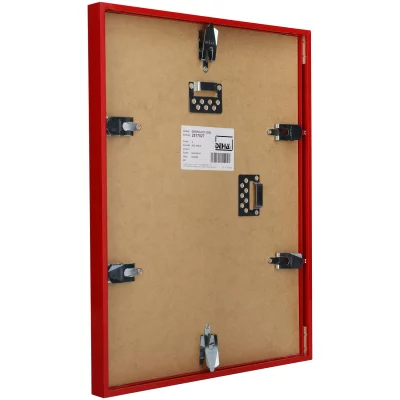 • Eine rückseitige Kante im Profil sorgt für das Einhaken der bequemen Drehfederverschlüssen und dient somit der Stabilität dieses Alurahmens und verhindert in großen Formaten das Durchhängen der Aluleisten.
