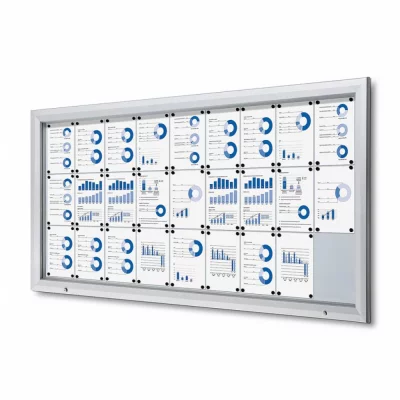 Abschließbarer feuerfester Schaukasten aus Aluminium für den Außeneinsatz mit schlagfestem ESG-Sicherheitsglas. Der hochwertige und langlebige Schaukasten ist in verschiedenen Größen erhältlich.