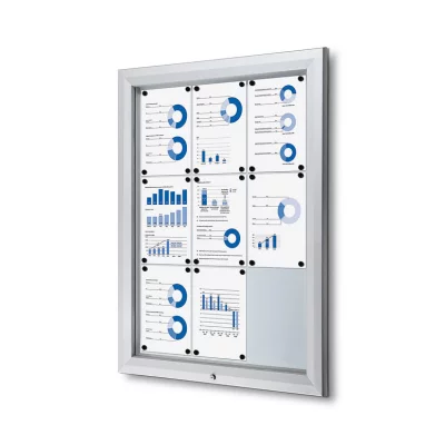 Abschließbarer feuerfester Schaukasten aus Aluminium für den Außeneinsatz mit schlagfestem ESG-Sicherheitsglas. Der hochwertige und langlebige Schaukasten ist in verschiedenen Größen erhältlich.