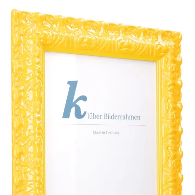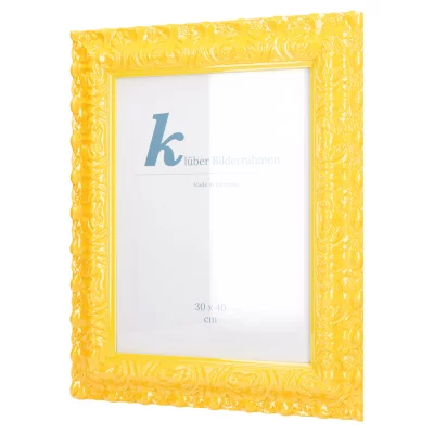 Barock war noch nie so modern! Dieser außergewöhnliche Bilderrahmen verbindet klassische Eleganz mit einem frechen, poppigen Twist. Das leicht geschwungene, breite Profil ist detailreich verziert mit floralen Ornamenten im klassischen Barockstil – doch die knallbunte Lackierung in 55 kräftigen Farben verleiht ihm einen funky, poppigen Charakter.