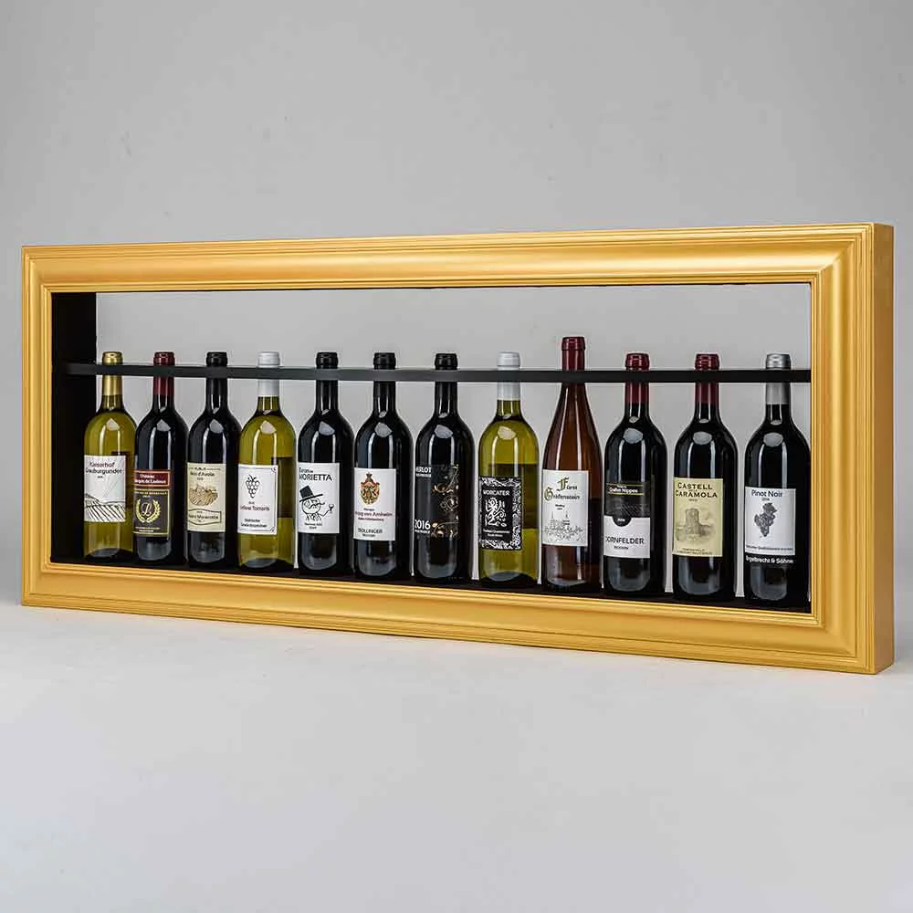Dieser Bilderrahmen, der explizit für das Aufbewahren und Präsentieren von Weinflaschen konzipiert wurde, wird das Herz jeden Weinliebhabers höher schlagen lassen. Der Weinflaschen-Bilderrahmen bringt Stil, Eleganz und Ausdruck an die Wand. Mit diesen einzigartigen Bilderrahmen-Weinregalen erregen Sie mit Sicherheit große Aufmerksamkeit. Sie sind perfekt für die Auslage von Weinen in jedem Restaurant, Weingeschäft und natürlich für den privaten Gebrauch bei Weinkennern.