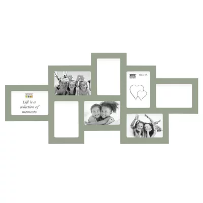 Trendiger Bilderwandrahmen in verschiedenen Farben. Dieser hochwertig verarbeitete Holzrahmen eignet sich für 8 Bilder in 10x15 cm. Das Außenmaß ist 36x77 cm.