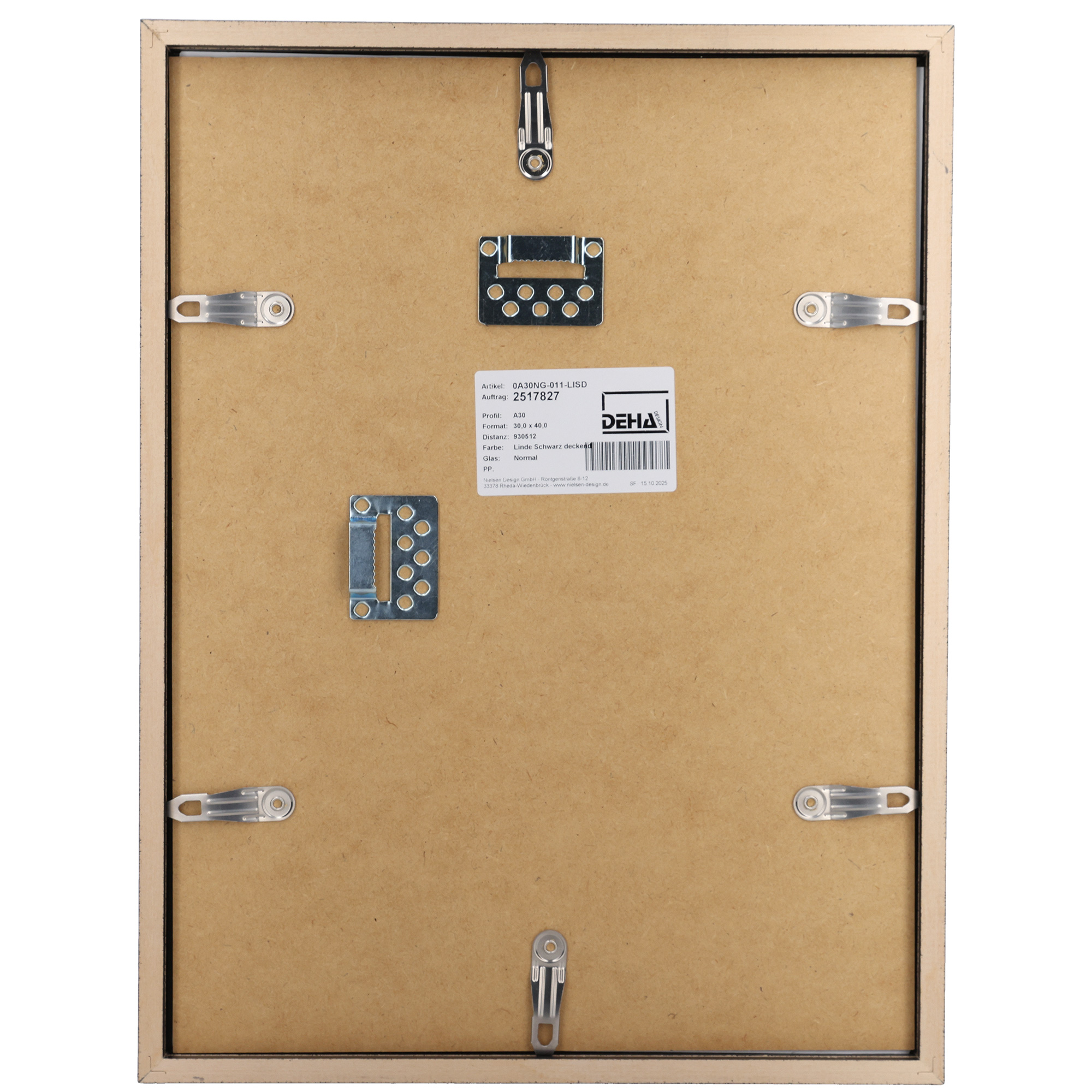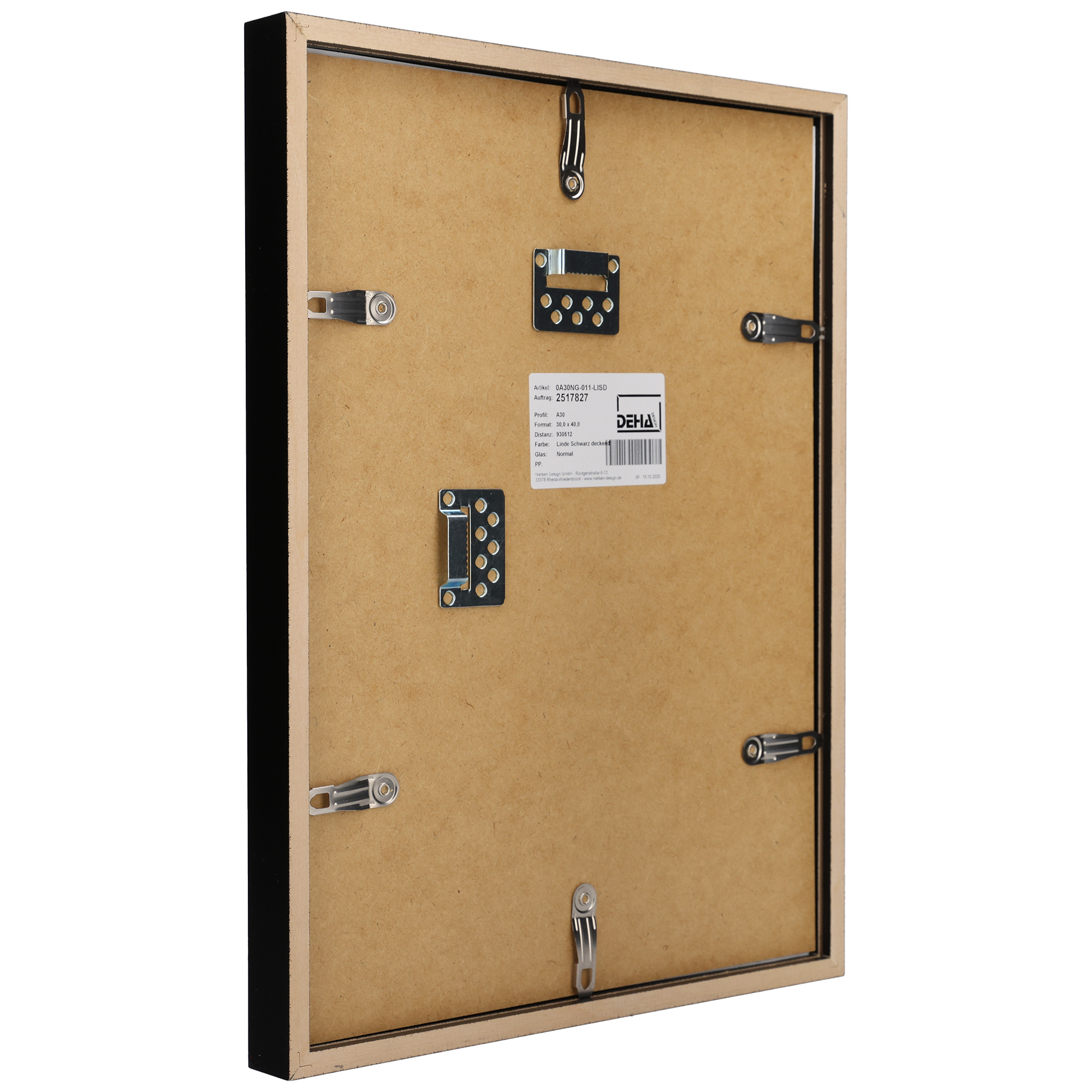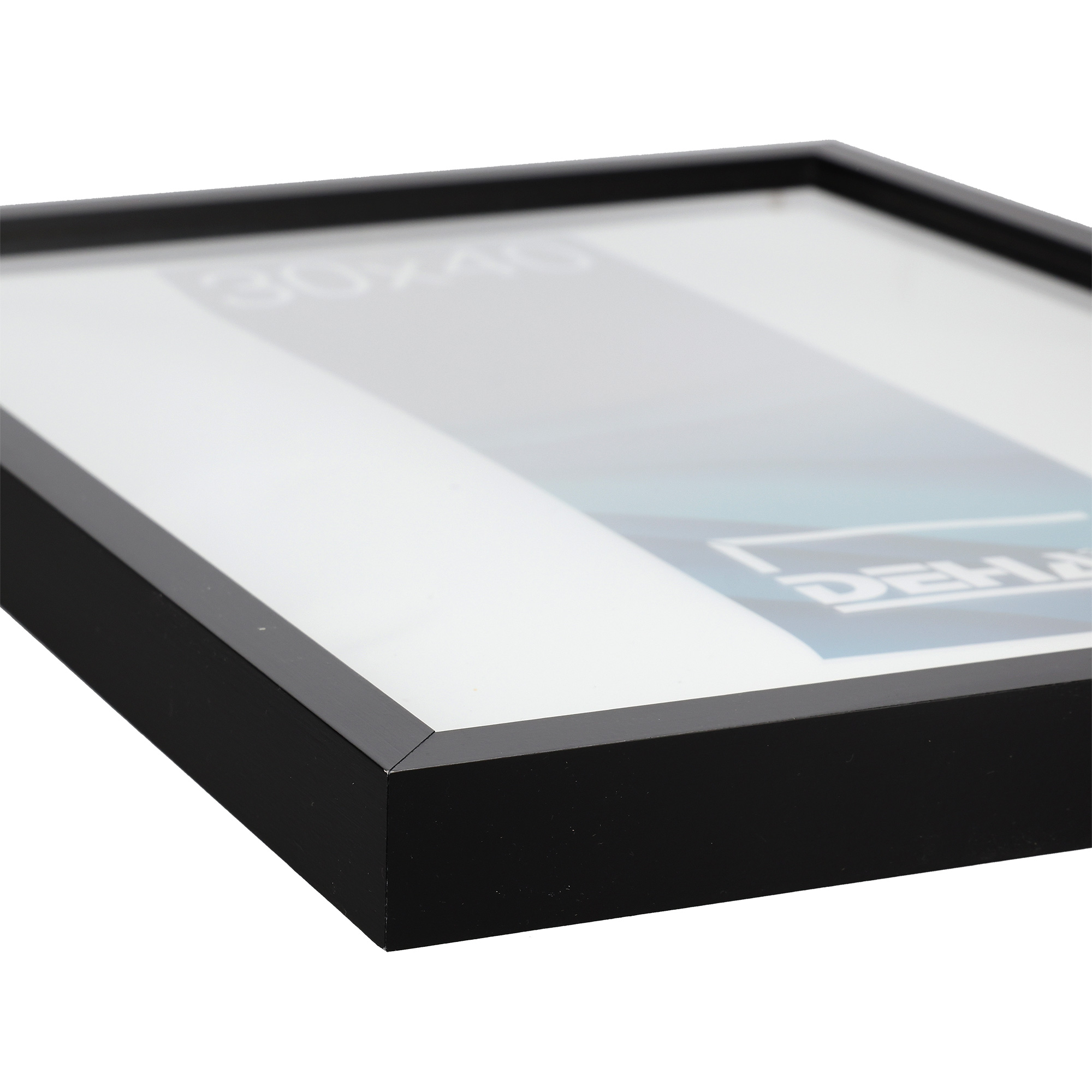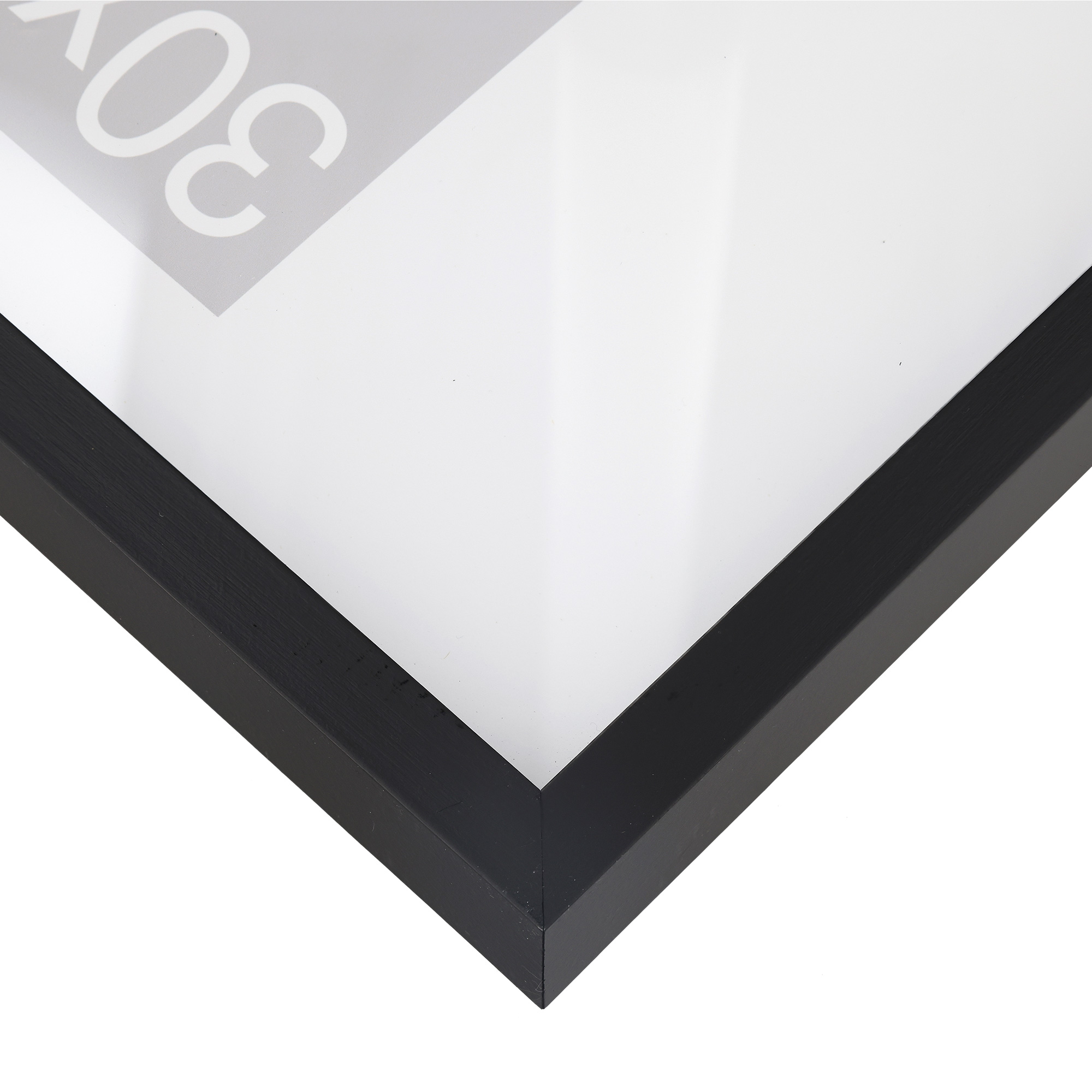 - Hochwertiges und kantengeschliffenes 2 mm Normalglas (Floatglas). Alternativ ist auch UV-schützendes Acrylglas sowie interferenzoptisch entspiegeltes Museumsglas verfügbar.