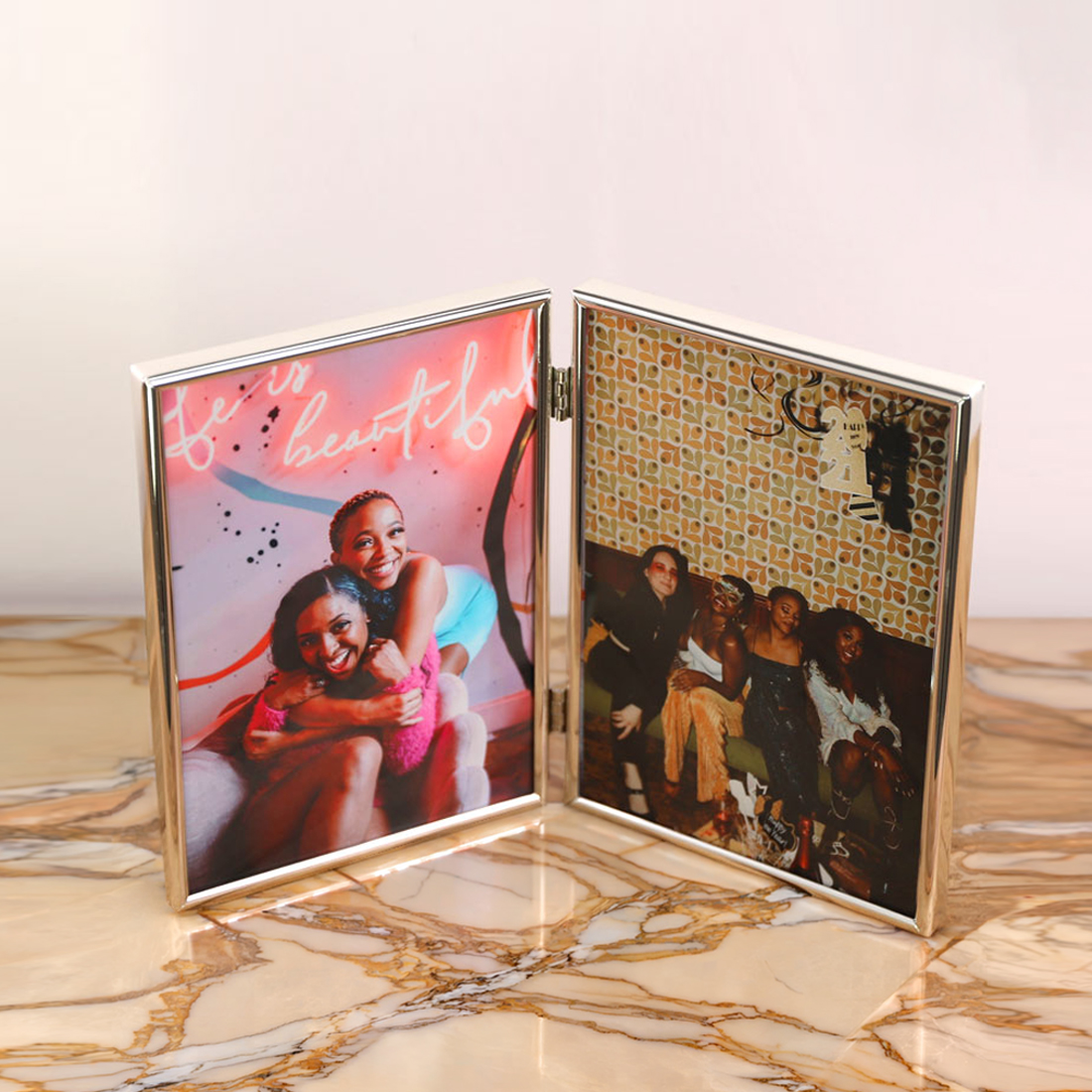 Zeigen Sie Ihre kostbaren Momente mit Stil und Eleganz mit dem Doppel-Portraitrahmen mit Scharnier. Er ist das perfekte Accessoire, um Ihre Lieblingsfotos in Szene zu setzen und Ihre persönliche Geschichte zum Leben zu erwecken.