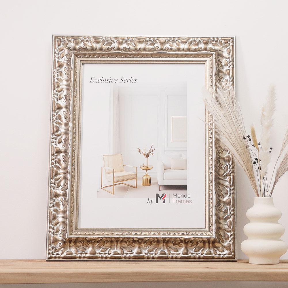 Die Rahmenprofile der Serie exclusiv zeichnen sich durch prachtvolle barocke und moderne Stilelemente aus und besitzen eine detailreiche Ornamentierungen. Die sorgfältige Oberflächenveredelungen machen diese Exklusiv Rahmen zu einem besonderen Blickfang an Ihrer Wand. Kunden, die ein Auge für schöne Details haben, werden sich in diese luxuriösen Massivholzrahmen verlieben.