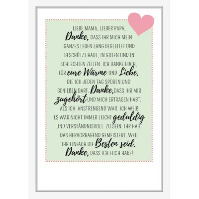 Uns ist eine schnelle und versandkostenfreie Lieferung sehr wichtig. Du sollst nach Bestellabschluss schnellstmöglich Dein Unikat in den Händen halten. Nach Eingang der Bestellung wird Dein Spruch personalisiert und fertiggestellt, liebevoll eingerahmt und noch am selben Tag versendet. Damit Du Dein Geschenk überreichen kannst, auch wenn Du vielleicht etwas kurzfristig bestellt hast. Wir versenden innerhalb 1-2 Werktagen.