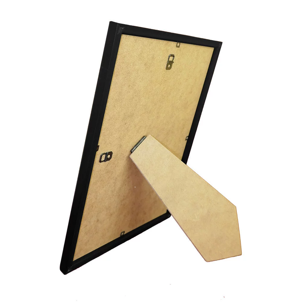 Das zeitlose und unaufdringliche Profil aus solidem MDF-Holz ist an den Gehrungsecken sauber verarbeitet. Der Bilderrahmen verfügt über einen Tischaufsteller für Hoch- und Querformat. Natürlich lässt sich der hochwertige Bilderrahmen auch ganz einfach an die Wand hängen. Der Bilderrahmen wird standardmäßig mit Kunstglas geliefert. Das hat zum einen den Vorteil, dass der Rahmen wesentlich leichter ist und sich dadurch viel einfacher aufhängen lässt. Und zum anderen ist das Kunstglas bruchsicher.