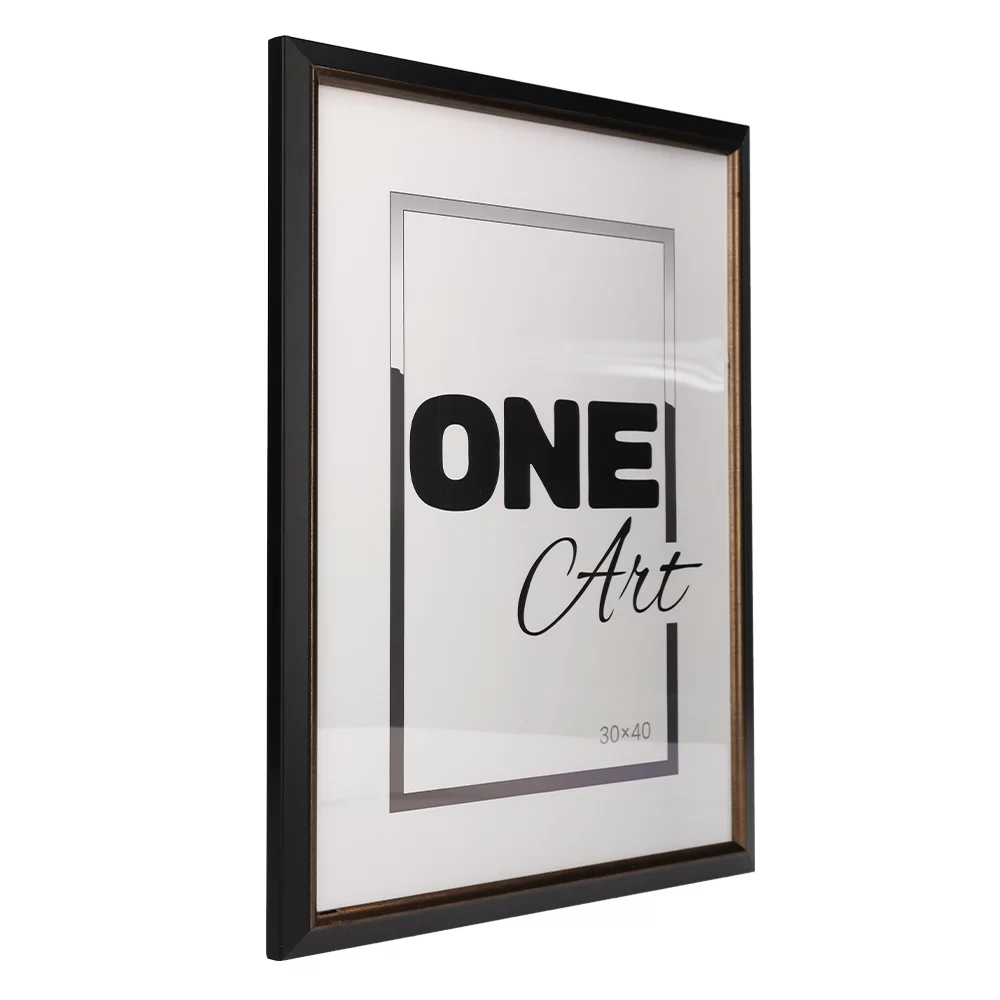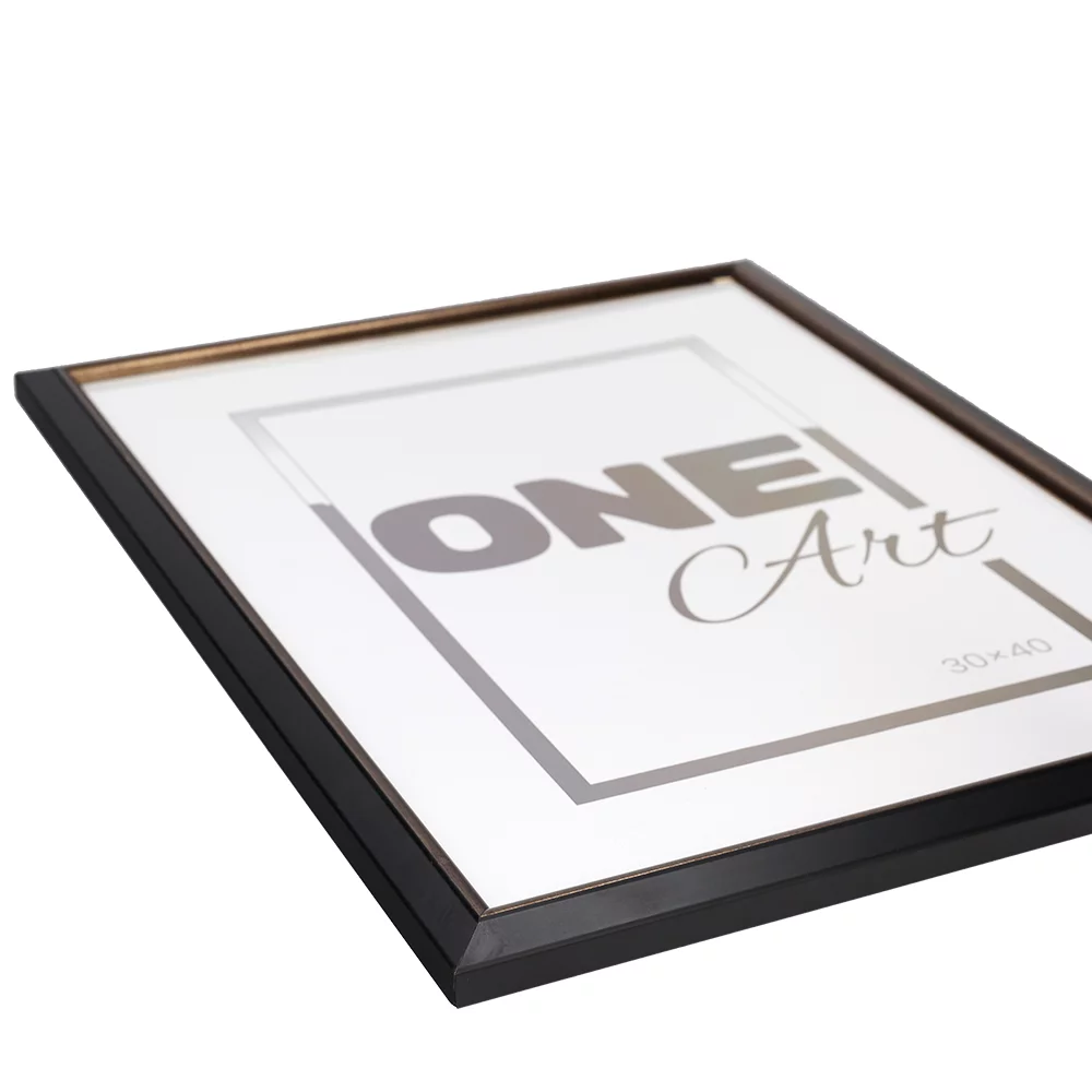 Frames FactoryHolz-Bilderrahmen Cecilia – Schwarz mit silbernem Streifen – FramesFactory