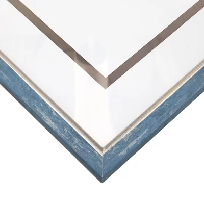 Der Bilderrahmen Cecilia von FramesFactory besticht durch seine Kombination aus massivem Holz und einem silbernem Zierstreifen auf schwarz lackiertem Holz. Diese feine Kontrastlinie lenkt den Blick auf das Bild, ohne dass sie dominiert und gibt dem Rahmen einen modernen, edlen Look.