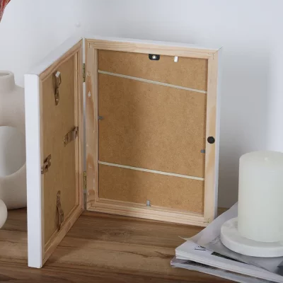 Entdecken Sie unseren einzigartigen Bilderrahmen mit robusten Kunstglas und Scharnieren. Dieser praktische, aufklappbare Rahmen ermöglicht ein einfaches Austauschen oder Einlegen Ihrer Bilder – ideal für häufig wechselnde Motive. Perfekt für Ihre Fotos oder Kunstwerke, schützt das Kunstglas Ihre Erinnerungen. Einfaches Design trifft auf Funktionalität – der ideale Blickfang für jedes Zuhause oder Büro.