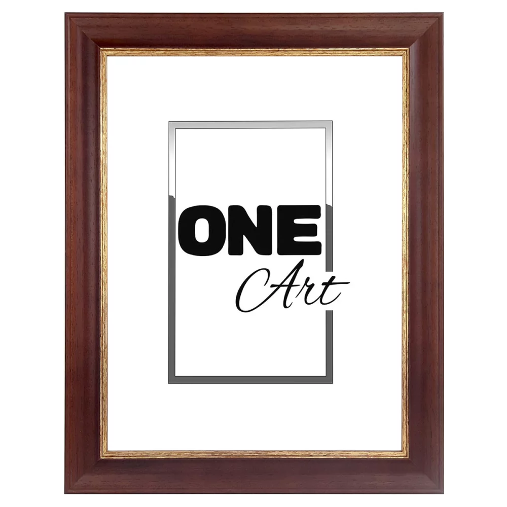 Der Rahmen Kinga ist in zwei Varianten erhältlich: Braun und Braun mit goldener Zierleiste. Mit einer Profilbreite von 40 mm und einer Profilhöhe von 21 mm setzt der Rahmen Ihre Bilder elegant in Szene und verleiht ihnen Tiefe und Präsenz. Das klassische Design passt zu Fotos, Kunstdrucken, Postern und kleinen Leinwänden gleichermaßen.