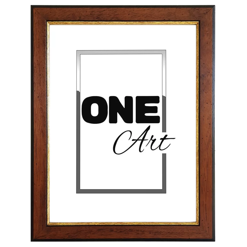 Der Bilderrahmen Valentina von FramesFactory kombiniert unbehandeltes Holz mit einem feinen goldenen Streifen, der dem Rahmen Leichtigkeit und Eleganz verleiht. Das Zusammenspiel von Braun und Gold sorgt für eine warme, edle Optik, die Ihre Bilder, Kunstdrucke oder Fotografien wirkungsvoll in Szene setzt.