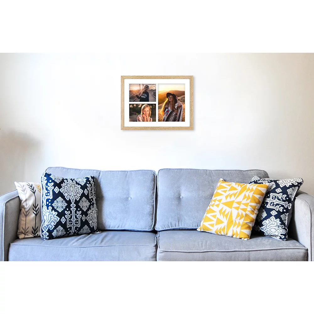 Oft fällt es uns schwer, aus den vielen schönen Urlaubsfotos nur eines einzurahmen und an die Wand zu hängen. Der Galerierahmen macht es möglich, mehrere Fotos in einem Bilderrahmen zu zeigen. In der Fotogalerie Hekla von Frames Factory können mehrere Fotos in einem Rahmen präsentiert werden. Sie ist perfekt für Familien- oder Urlaubsfotos. Die Fotos können verschiedene Größen haben.
