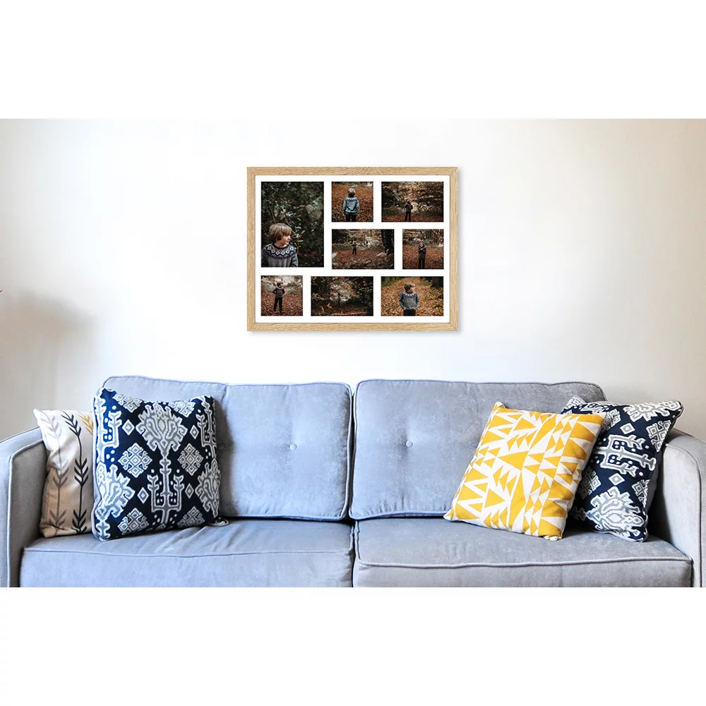 Oft fällt es uns schwer, aus den vielen schönen Urlaubsfotos nur eines einzurahmen und an die Wand zu hängen. Der Galerierahmen macht es möglich, mehrere Fotos in einem Bilderrahmen zu zeigen. In der Fotogalerie Hekla von Frames Factory können mehrere Fotos in einem Rahmen präsentiert werden. Sie ist perfekt für Familien- oder Urlaubsfotos. Die Fotos können verschiedene Größen haben.