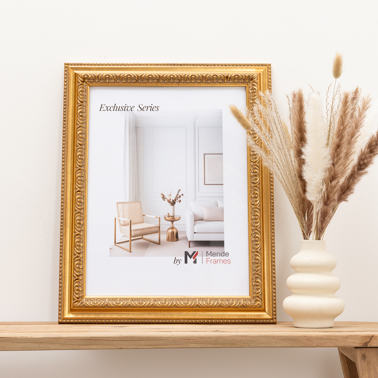 Die Rahmenprofile der Serie exclusiv zeichnen sich durch prachtvolle barocke und antike Stilelemente aus und besitzen eine detailreiche Ornamentierung. Die sorgfältige Oberflächenveredelungen machen diese exklusiven Rahmen zu einem besonderen Blickfang an Ihrer Wand. Kunden, die ein Auge für schöne Details haben, werden sich in diese luxuriösen Massivholzrahmen verlieben.