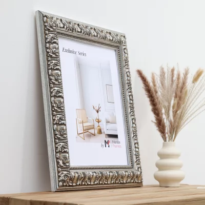 Die Rahmenprofile der Serie exclusive zeichnen sich durch prachtvolle barocke und antike Stilelemente aus und besitzen eine detailreiche Ornamentierung. Die sorgfältige Oberflächenveredelungen machen diese exklusiven Rahmen zu einem besonderen Blickfang an Ihrer Wand. Kunden, die ein Auge für schöne Details haben, werden sich in diese luxuriösen Massivholzrahmen verlieben.