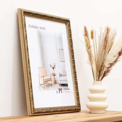 Die Rahmenprofile der Serie exclusive zeichnen sich durch prachtvolle barocke und antike Stilelemente aus und besitzen eine detailreiche Ornamentierung. Die sorgfältige Oberflächenveredelungen machen diese exklusiven Rahmen zu einem besonderen Blickfang an Ihrer Wand. Kunden, die ein Auge für schöne Details haben, werden sich in diese luxuriösen Massivholzrahmen verlieben.