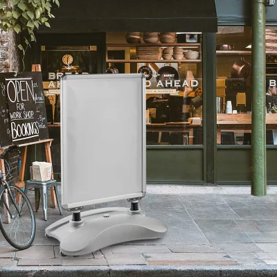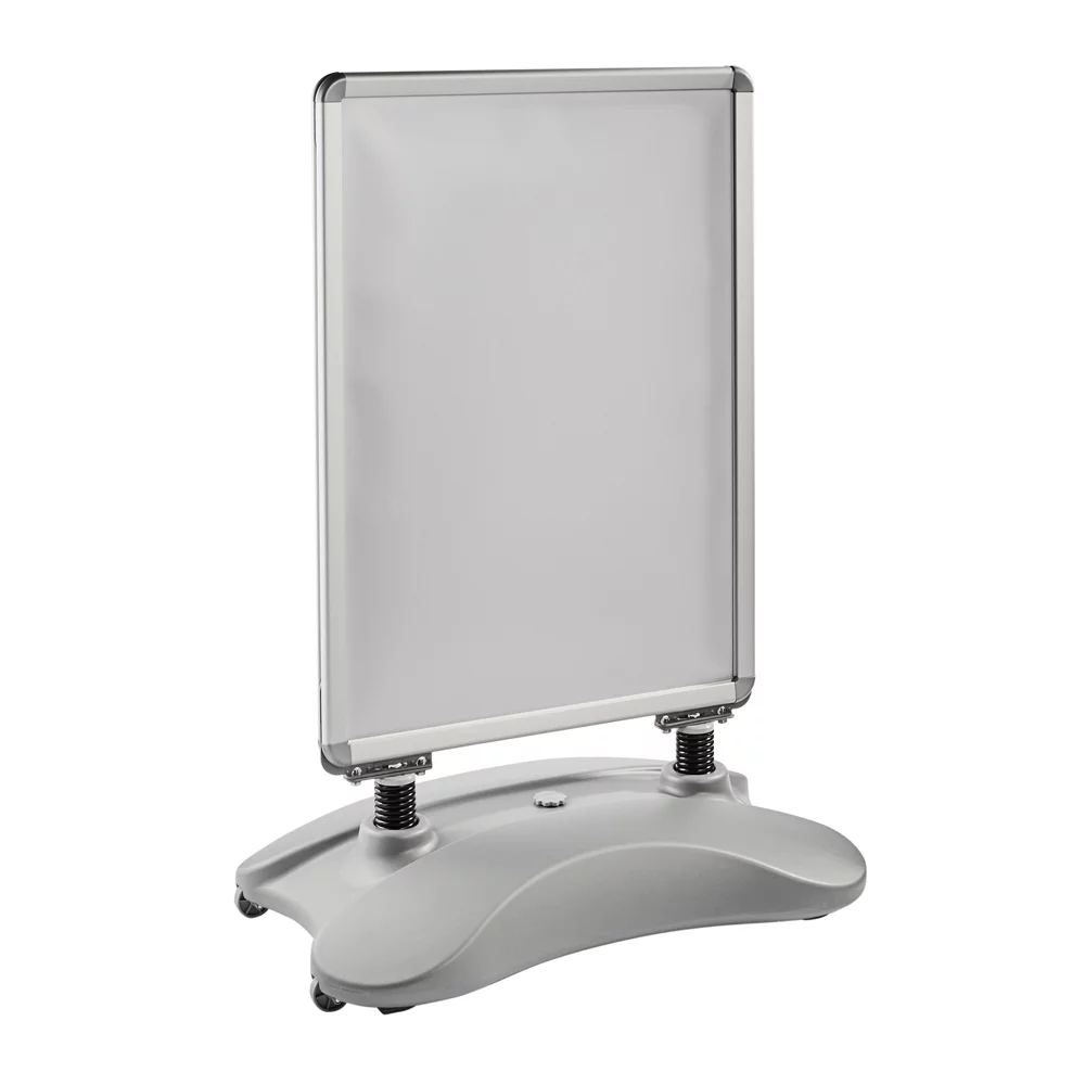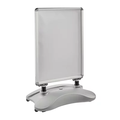Der STORM-STOP Lite A1 mit Wassertank ist ein windfester, doppelseitiger Kundenstopper in Silber, der speziell für den Einsatz im Außenbereich entwickelt wurde. Mit seinem 32-mm-Aluminium-Klapprahmen und den abgerundeten Ecken kombiniert er Stabilität, Sicherheit und modernes Design. Der Aufsteller eignet sich optimal für Geschäfte, Restaurants, Messen und Veranstaltungen im geschützten Außenbereich.
