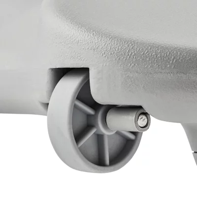 Dank des befüllbaren Wassertanks als Standfuß bleibt der Kundenstopper auch bei Wind zuverlässig stabil. Gleichzeitig ermöglichen die integrierten Rollen, den Aufsteller einfach zu bewegen und nach Ladenschluss unkompliziert zu verstauen.
