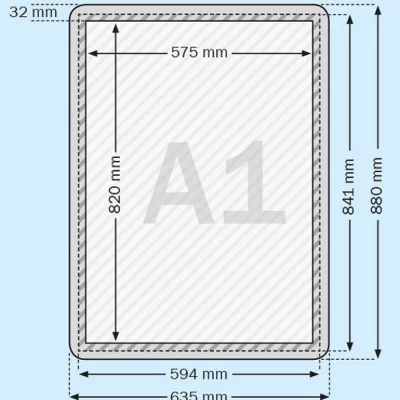 DIN A1-kompatibel: Wechselrahmen für Plakate im Format 594 × 841 mm auf beiden Seiten.