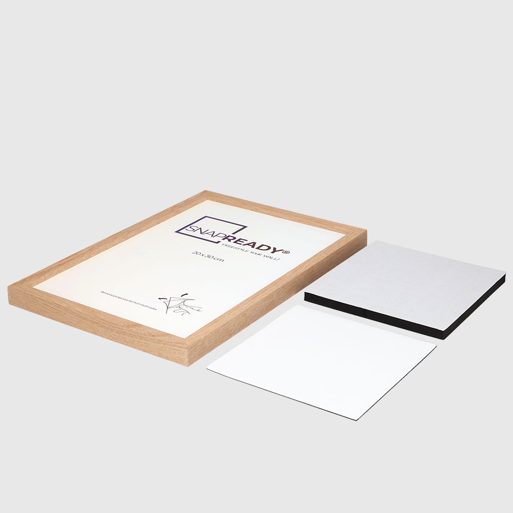 Das System basiert auf zwei starken Neodym-Magneten. Der erste Magnet wird auf der Rückseite des Rahmens befestigt, der zweite – das Magnetpad – haftet an der Wand. Beim Abnehmen bleibt ein Magnetpad an der Wand, das andere fest mit dem Rahmen verbunden – so können Sie Ihr Bild jederzeit neu positionieren oder gegen ein anderes Motiv austauschen.