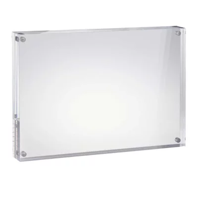 Der freistehende Magnet-Bilderrahmen aus zwei glasklaren Acrylplatten sorgt für eine elegante und professionelle Präsentation von Fotos, Informationen oder Preislisten. Vier kraftvolle Magnete verbinden die beiden 15-mm-Platten sicher miteinander, sodass sich der Inhalt in wenigen Sekunden austauschen lässt. Ideal für Verkaufsflächen, Empfangsbereiche, Büroräume oder als stilvolles Element auf dem Schreibtisch.