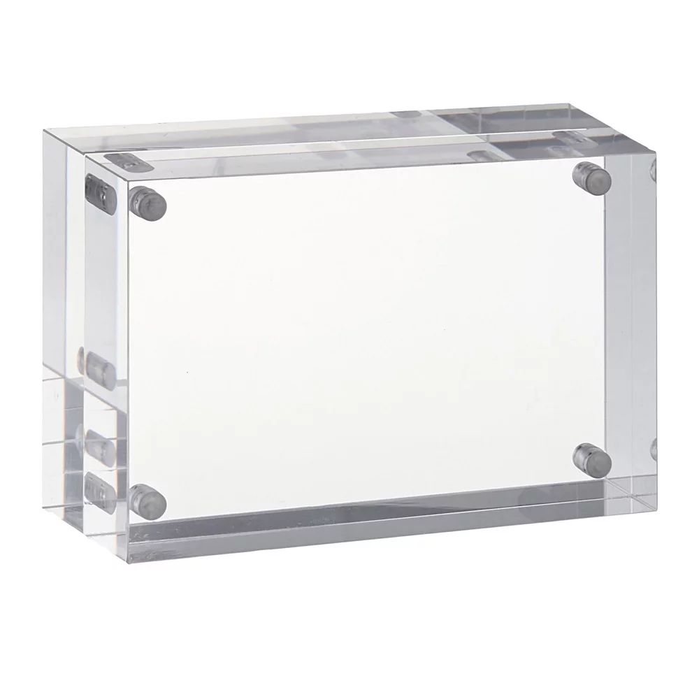Der freistehende Magnet-Bilderrahmen aus zwei glasklaren Acrylplatten sorgt für eine elegante und professionelle Präsentation von Fotos, Informationen oder Preislisten. Vier kraftvolle Magnete verbinden die beiden 15-mm-Platten sicher miteinander, sodass sich der Inhalt in wenigen Sekunden austauschen lässt. Ideal für Verkaufsflächen, Empfangsbereiche, Büroräume oder als stilvolles Element auf dem Schreibtisch.