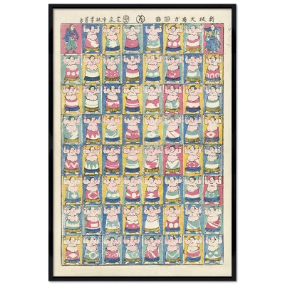 Poster mit Rahmen - Utagawa Yoshikazu - Sumo Wrestlers