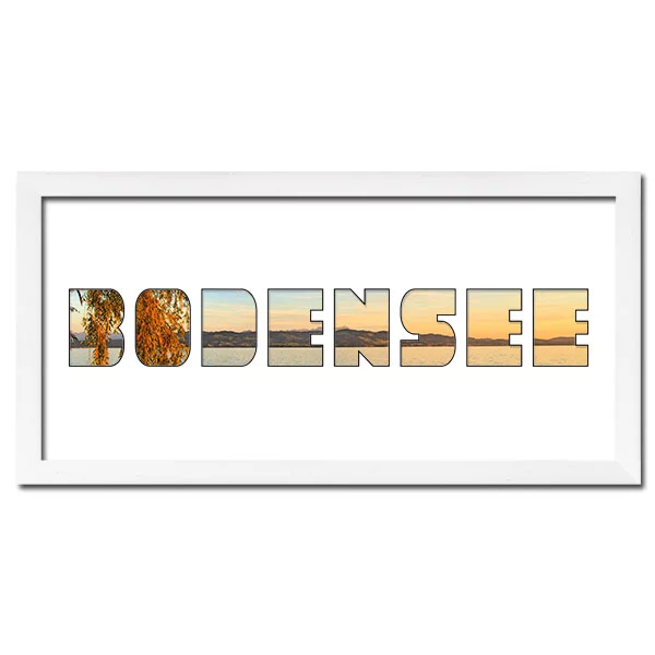 Wählen Sie aus zahlreichen deutschen Städten, Inseln, Gewässern oder Bundesländern. Die ausgeschnittenen Buchstaben im Passepartout lassen sich mit einem Panoramafoto oder mehreren einzelnen Fotos hinterlegen. So entsteht eine ganz persönliche Collage, die Ihr Zuhause schmückt oder sich perfekt als Geschenk eignet.