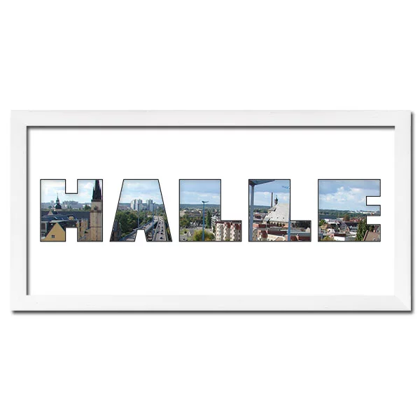 Wählen Sie aus zahlreichen deutschen Städten, Inseln, Gewässern oder Bundesländern. Die ausgeschnittenen Buchstaben im Passepartout lassen sich mit einem Panoramafoto oder mehreren einzelnen Fotos hinterlegen. So entsteht eine ganz persönliche Collage, die Ihr Zuhause schmückt oder sich perfekt als Geschenk eignet.