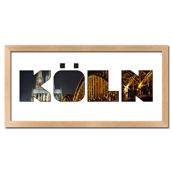 Wählen Sie aus zahlreichen deutschen Städten, Inseln, Gewässern oder Bundesländern. Die ausgeschnittenen Buchstaben im Passepartout lassen sich mit einem Panoramafoto oder mehreren einzelnen Fotos hinterlegen. So entsteht eine ganz persönliche Collage, die Ihr Zuhause schmückt oder sich perfekt als Geschenk eignet.