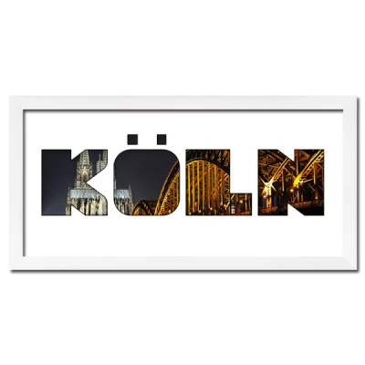 Wählen Sie aus zahlreichen deutschen Städten, Inseln, Gewässern oder Bundesländern. Die ausgeschnittenen Buchstaben im Passepartout lassen sich mit einem Panoramafoto oder mehreren einzelnen Fotos hinterlegen. So entsteht eine ganz persönliche Collage, die Ihr Zuhause schmückt oder sich perfekt als Geschenk eignet.