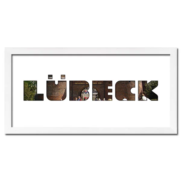 Wählen Sie aus zahlreichen deutschen Städten, Inseln, Gewässern oder Bundesländern. Die ausgeschnittenen Buchstaben im Passepartout lassen sich mit einem Panoramafoto oder mehreren einzelnen Fotos hinterlegen. So entsteht eine ganz persönliche Collage, die Ihr Zuhause schmückt oder sich perfekt als Geschenk eignet.