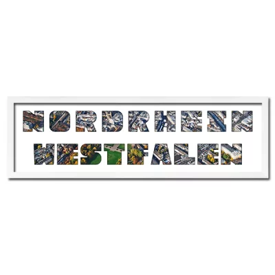 Wählen Sie aus zahlreichen deutschen Städten, Inseln, Gewässern oder Bundesländern. Die ausgeschnittenen Buchstaben im Passepartout lassen sich mit einem Panoramafoto oder mehreren einzelnen Fotos hinterlegen. So entsteht eine ganz persönliche Collage, die Ihr Zuhause schmückt oder sich perfekt als Geschenk eignet.