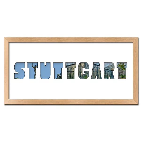 Wählen Sie aus zahlreichen deutschen Städten, Inseln, Gewässern oder Bundesländern. Die ausgeschnittenen Buchstaben im Passepartout lassen sich mit einem Panoramafoto oder mehreren einzelnen Fotos hinterlegen. So entsteht eine ganz persönliche Collage, die Ihr Zuhause schmückt oder sich perfekt als Geschenk eignet.