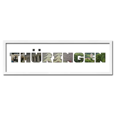 Wählen Sie aus zahlreichen deutschen Städten, Inseln, Gewässern oder Bundesländern. Die ausgeschnittenen Buchstaben im Passepartout lassen sich mit einem Panoramafoto oder mehreren einzelnen Fotos hinterlegen. So entsteht eine ganz persönliche Collage, die Ihr Zuhause schmückt oder sich perfekt als Geschenk eignet.