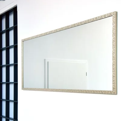 Wie bei Bilderrahmen bezieht sich auch bei diesem Wandspiegel die Größenangabe auf die Maße des Glases. Die exakten Außenformate inklusive des Spiegelrahmens sind daher 55x155 cm bzw. 75x175 cm. Die Profilhöhe beträgt 20 mm. Das Spiegelglas ist 3 mm dick, kupferfrei, hoch korrosionsbeständig und wurde nach DIN EN 1036 (Spiegel aus silberbeschichteten Floatglas für den Innenbereich) produziert. Das Spiegelglas wird für optimale Stabilität rückseitig mit dem Holzrahmen verklebt und kann nicht aus dem Rahmen entfernt werden.