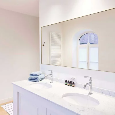 Der Wandspiegel LUCKA besticht durch sein minimalistisches und elegantes Design. Mit seinem schmalen, hochwertigen Aluminiumrahmen und einer satinierten Beschichtung, die in verschiedenen Farben erhältlich ist, fügt er sich harmonisch in jedes moderne Interieur ein. Der Spiegel ist leicht in den tiefen Rahmen eingelassen, was ihm nicht nur Eleganz, sondern auch optimalen Schutz verleiht.